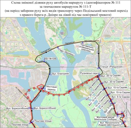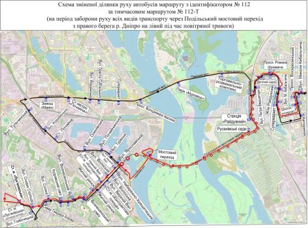 У Києві від 20 жовтня під час повітряної тривоги діятиме новий порядок руху автобусів № 110, № 111 та № 112, що проходить через Подільський мостовий перехід із правого на лівий берег Дніпра. Водночас маршрут автобусів, що курсують з лівого на правий берег, лишається незмінним.