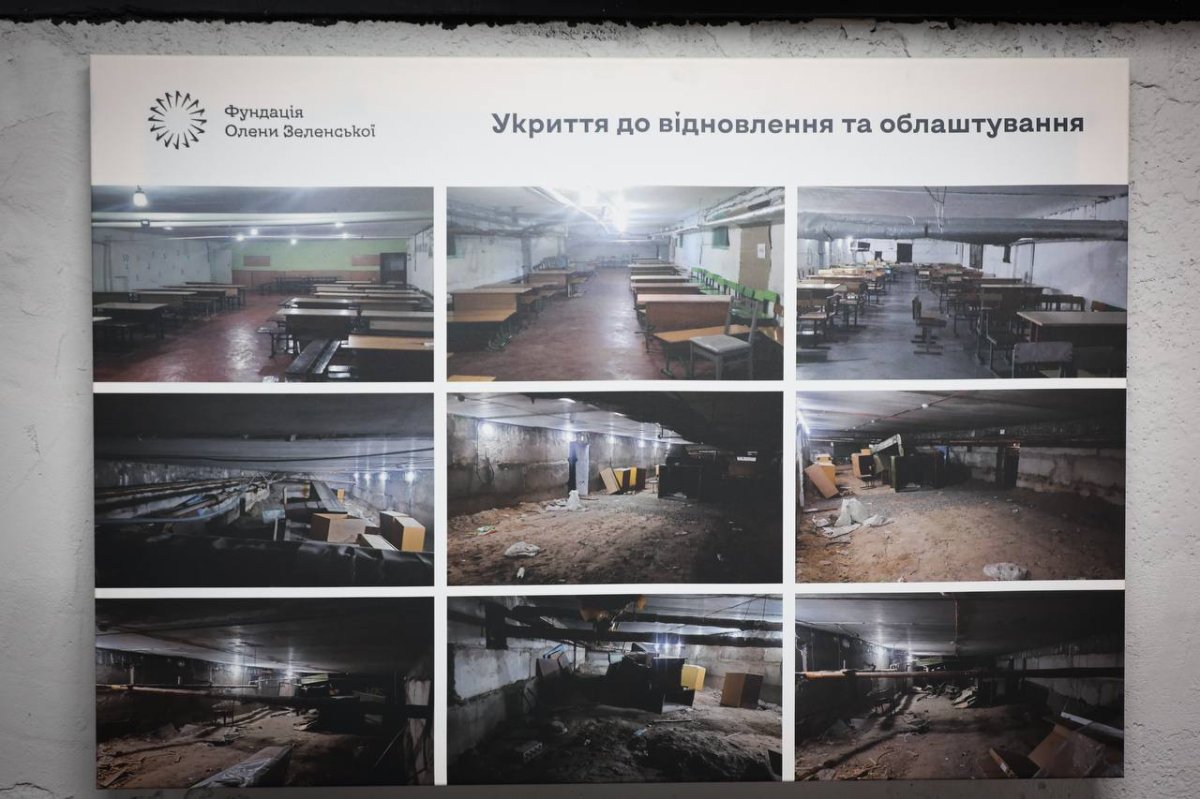 Перша леді України Олена Зеленська разом з головою Київської обласної державної адміністрації Миколою Калашником відвідали Кагарлицький ліцей, де було представлено оновлене укриття, відремонтоване за підтримки Фундації Олени Зеленської.