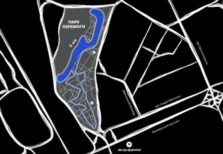 Довгий маршрут тут не пробігти, дистанція парку загалом сягає 5.04 км, проте можна охопити всі стежки та фінішувати 7 км. Парк Перемоги ідеальний для недовгих ритмічних тренувань початківців.