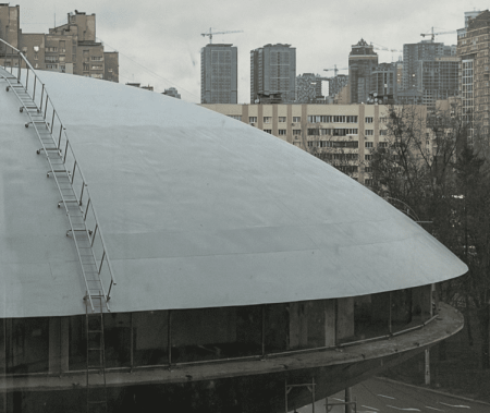 У Києві в споруду пам’ятки архітектури, відомої як “Летюча тарілка”, що є частиною будівлі Українського інституту науково-технічної експертизи та інформації, навідались інспектори Департаменту охорони культурної спадщини КМДА та провели моніторинг ходу реставраційних робіт.