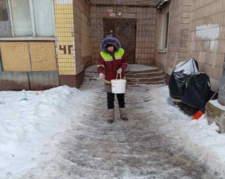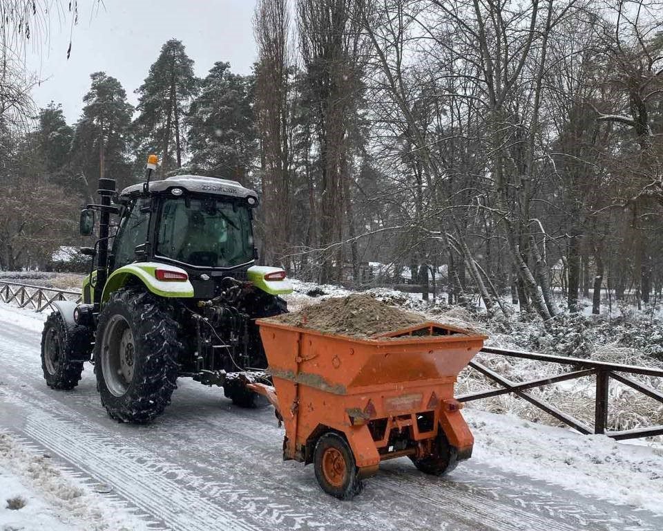 Прибудинкові території очищають та обробляють протиожеледними засобами понад 2800 працівників комунальних керуючих компаній та 20 одиниць техніки.