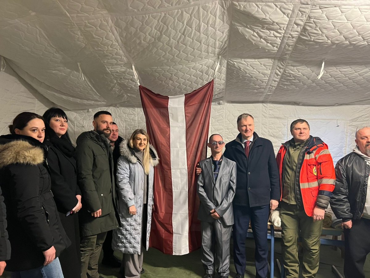 На завершення візиту Надзвичайний та Повноважний Посол Латвійської Республіки в Україні передав Департаменту соціального захисту населення Київської ОДА від латвійського фонду Ziedot.lv великий намет на 40 місць, оснащений автономним опаленням і дизельним генератором. Він стане в пригоді як під час організації евакуації внутрішньо переміщених осіб, так і для надання екстрених соціальних і психологічних послуг цивільному населенню, яке постраждало від обстрілів. Вже сьогодні намет розгорнутий та працює як пункт обігріву для мешканців Бородянки під час аварійних відключень електроенергії.