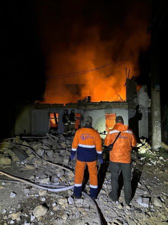 Як повідомили в ДСНС, у приватному секторі після влучання БпЛА загорівся житловий будинок — під час гасіння рятувальники виявили тіла двох загиблих.