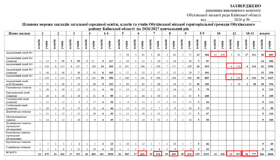 16 квітня, всупереч вимогам петиції, Виконком затвердив планову мережу освітніх закладів в Обухівській громаді, яке передбачає з вересня 2026 року набрати 14 десятих класів в єдиному ліцеї №1 ім. Андрія Малишка, і закрити десяті класи в ліцеях №3 і №5. Планова мережа – це ключове нормативне рішення, на основі якого ліцеї можуть набирати 10 класи, або ні.