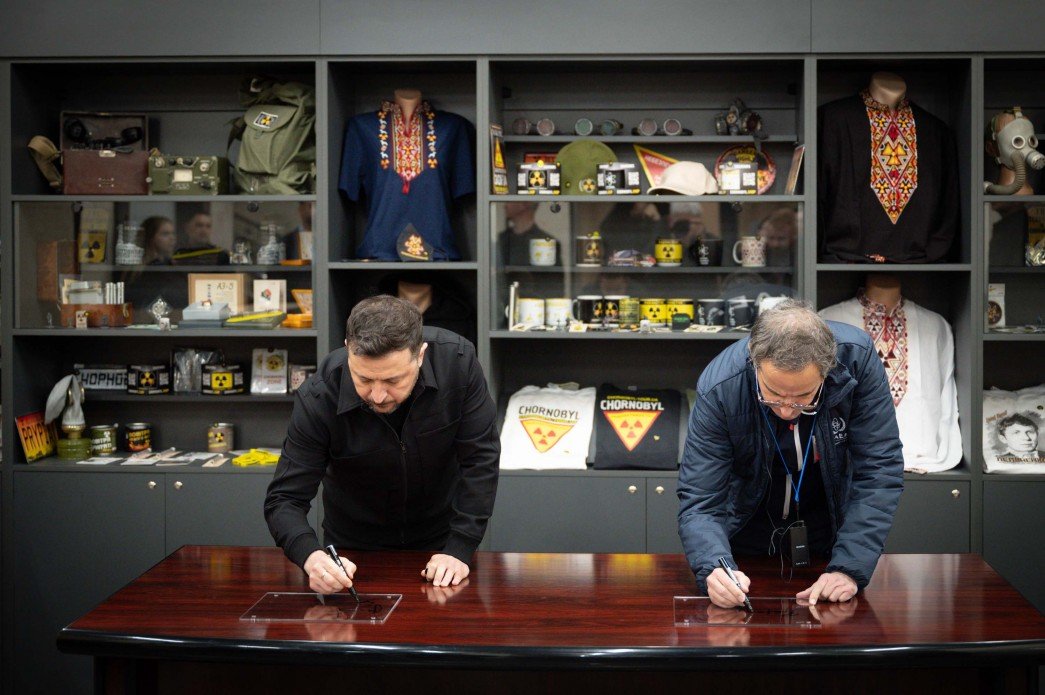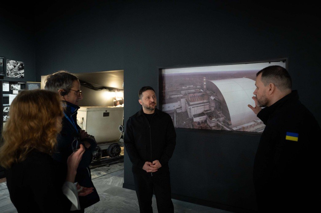 З нагоди сорокових роковин Чорнобильської катастрофи Президент України Володимир Зеленський разом із генеральним директором МАГАТЕ Рафаелем Гроссі 26 квітня взяли участь у відкритті нової постійної експозиції Національного музею “Чорнобиль”: “Чорнобиль: люди і сенси”. Глава держави також заслухав доповідь керівника МВС щодо робіт із ліквідації наслідків російського удару по конфайнменту ЧАЕС.
