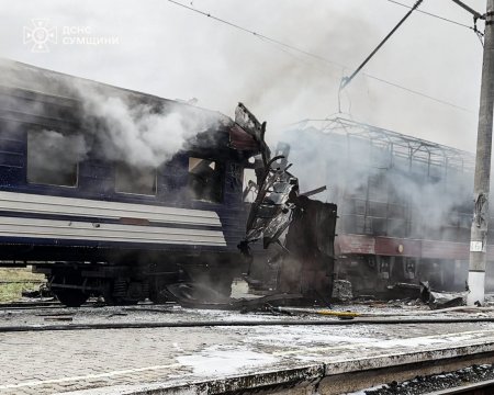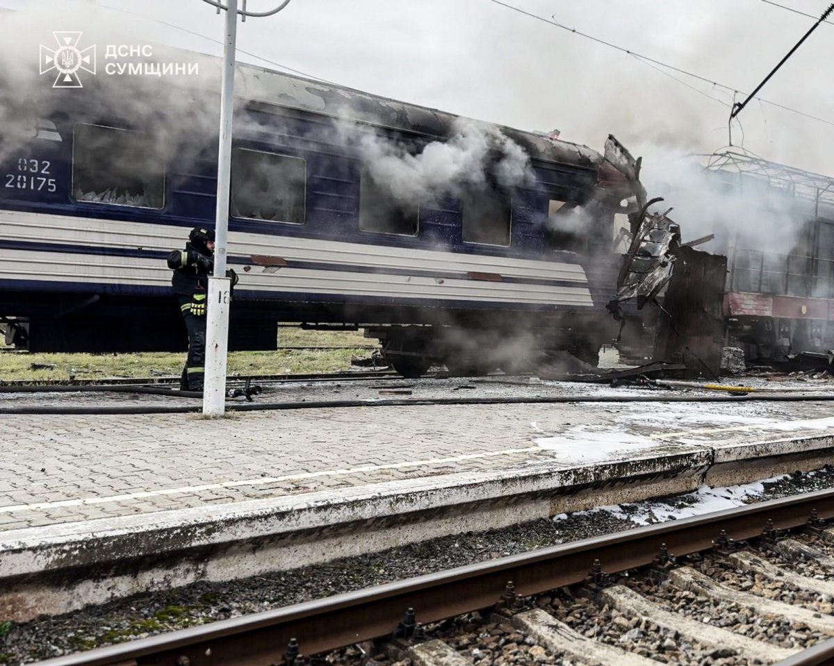 “У Шосткинській громаді ворог атакував залізничний вокзал, через що зайнявся один із пасажирських вагонів. Під час ліквідації пожежі рятувальники потрапили під повторний обстріл, однак, на щастя, ніхто з них не постраждав”, – повідомили в ДСНС.