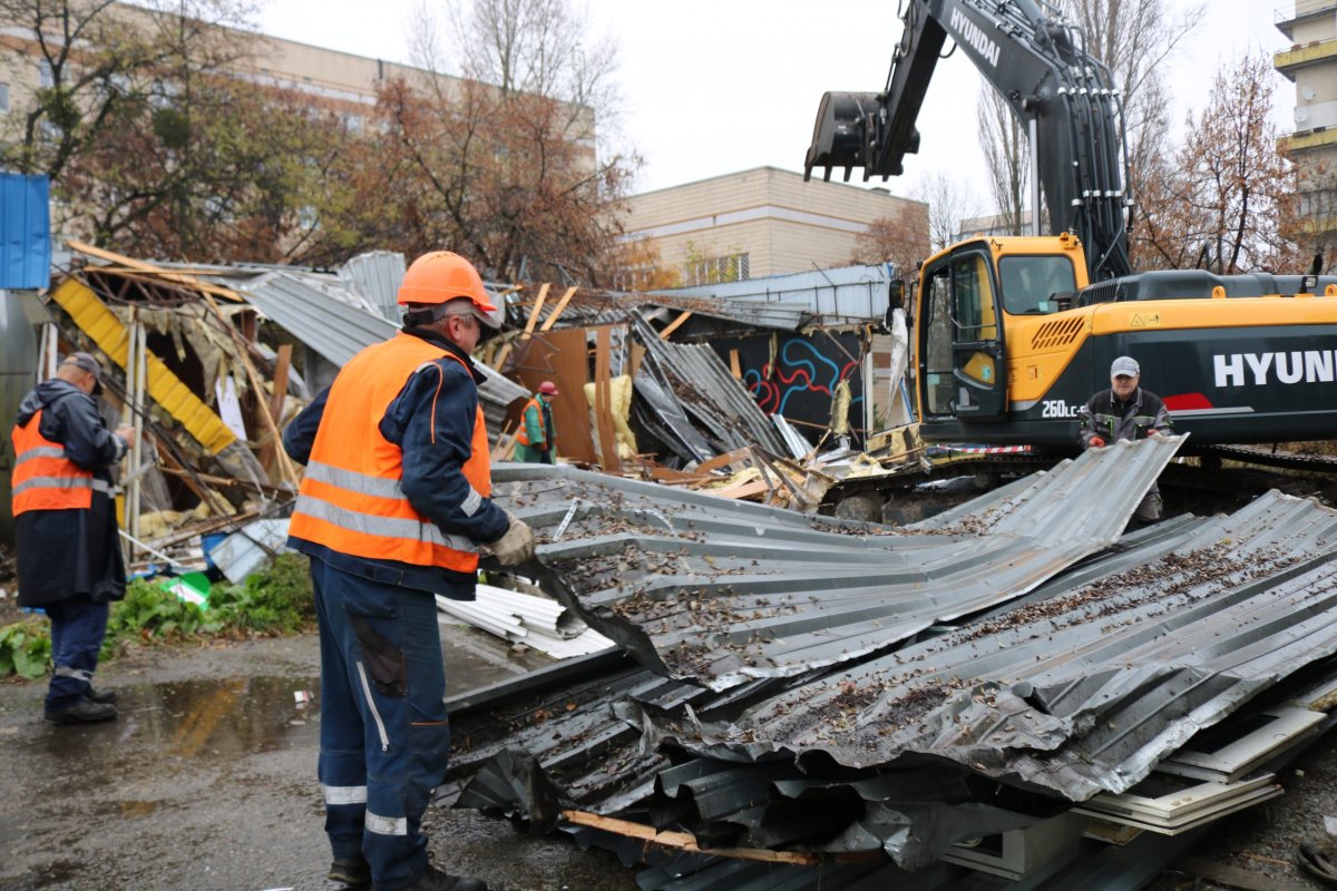 Тимчасові споруди за цими адресами були встановлені у 2008 році та розміщувалися там майже 20 років. Після завершення робіт на території передбачено створити громадський простір із відновленням зелених зон і облаштуванням пішохідних доріжок.
