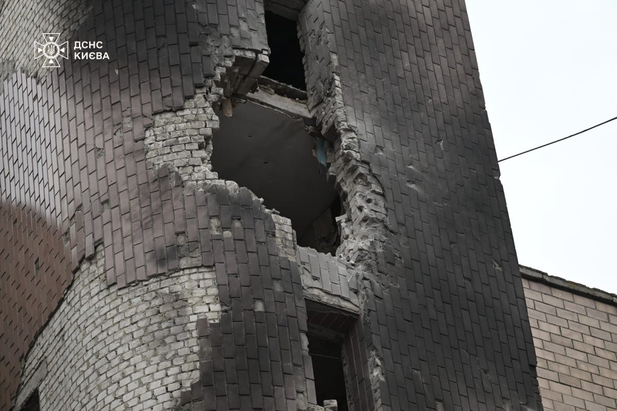 Зазначається, що пошкоджень зазнали більше 10 житлових багатоповерхівок, приватні будинки, цивільна інфраструктура. У Дарницькому районі з епіцентру удару врятували майже 70 літніх людей із пансіонату, а в Дніпровському — спецпідрозділ “Дельта” проводить складні висотні роботи з демонтажу аварійних конструкцій.